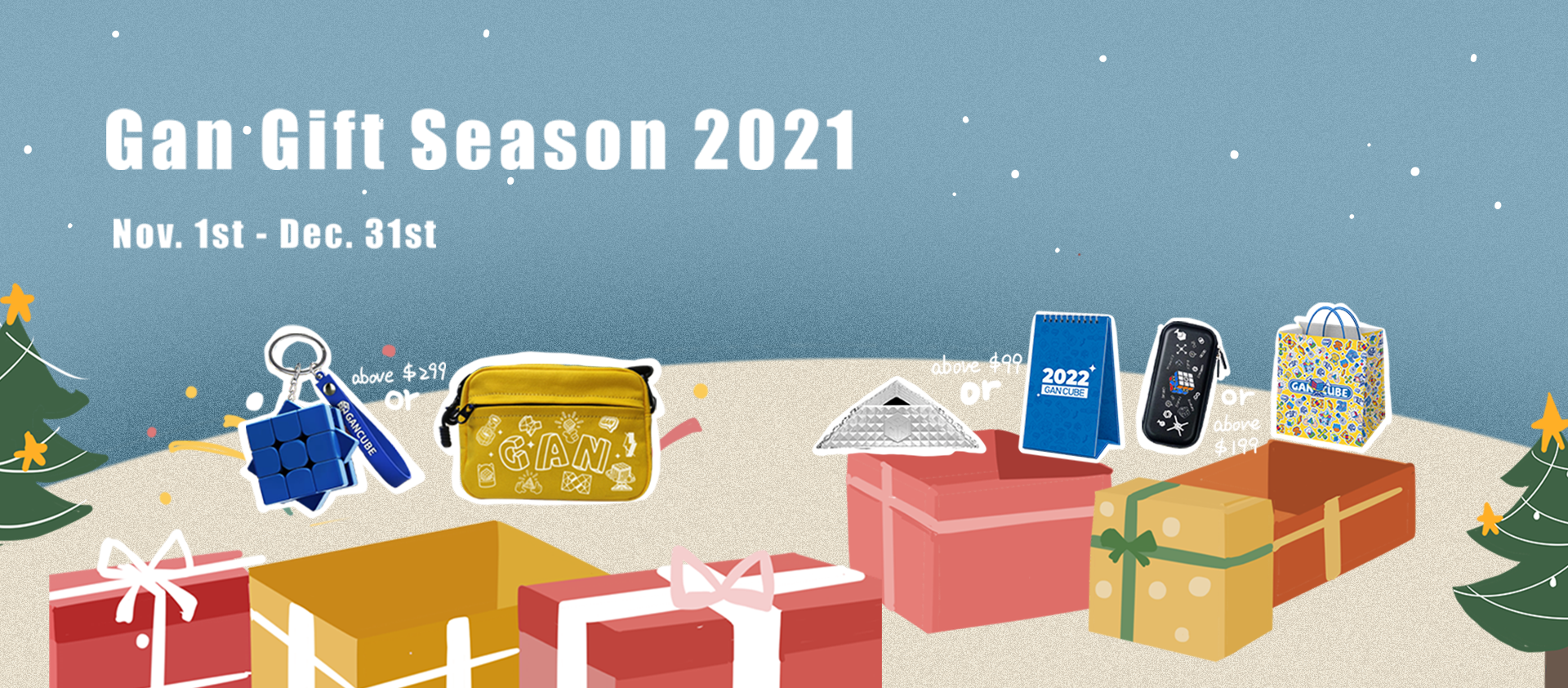 During November & December, place orders at GANCUBE SHOP and you will get an additional present from us if it is above a certain amount.